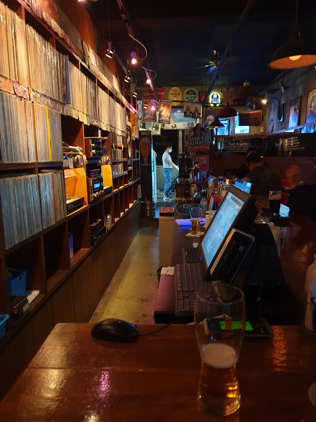 LP 벽 중간에 군데군데 스피커가 있어 매장 전체에 강렬한 밴드 사운드를 느낄 수 있는 환경이다.