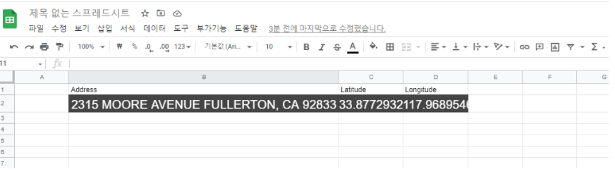 구글 스프레드시트로 위경도 구할 수 있는 엄청난 툴..