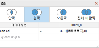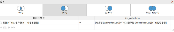 KinKcd_B와 상권데이터셋을 아래와 같은 식으로 Join합니다.