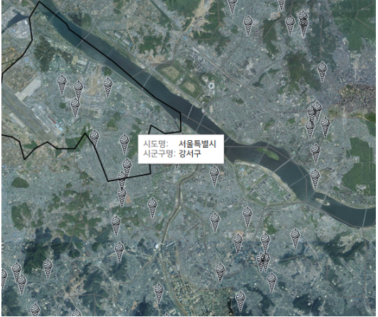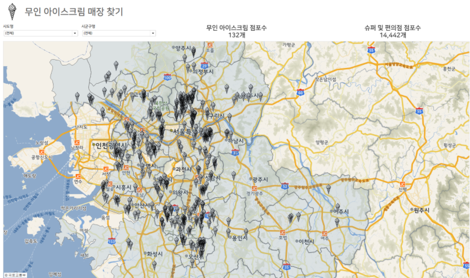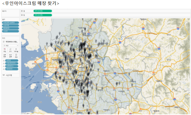 (사실 데이터 원본을 서울 경기 상권데이터로 하고 계산된 필드와 필터링으로 무인아이스크림 매장을 따로 추출하는 것이 효과적이라고 생각됩니다.)
