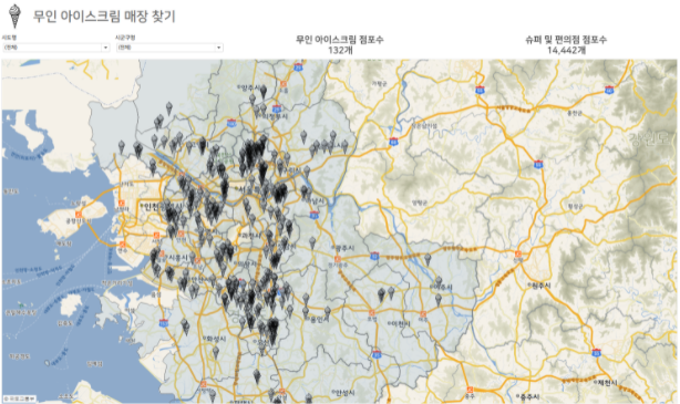- 요즘 동네에 한 두개씩 있다는 무인 아이스크림 편의점, 정확히 얼마나 있는지, 주로 어디에 위치하고 있는지 알면 나중에 창업할 때 도움이 될 것 같다는 생각이 들었거든요.