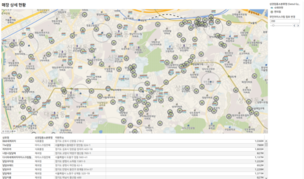 - 매장 상세현황에 사실 매장에 대한 정보가 없어서.. 결합할 수 있는 데이터가 있으면 보강하고 싶습니다.