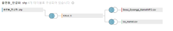 Shp파일과 서울 경기 상권데이터, 방금 추출한 Ice_market데이터를 조인해야합니다.