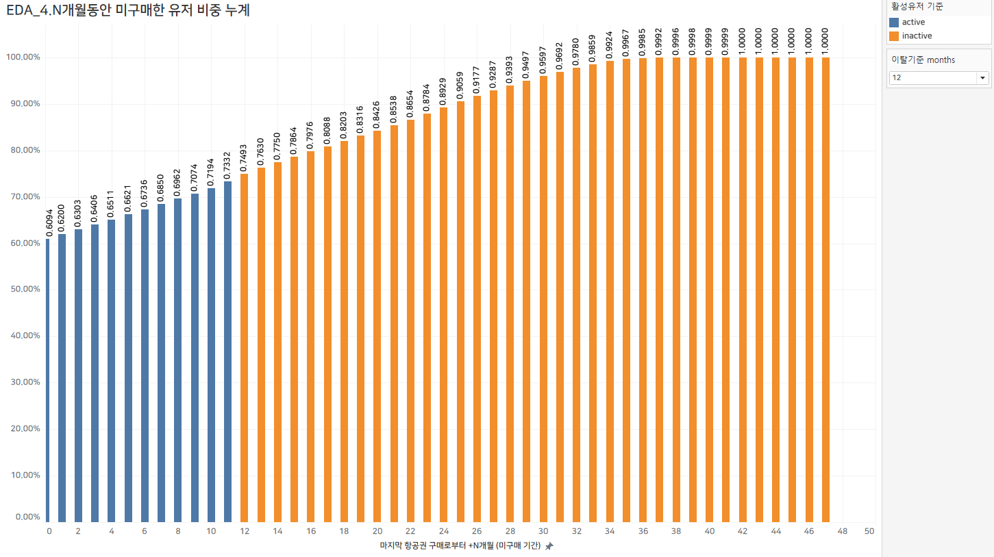 n=12 : 12개월동안 항공권을 구매하지 않은 경우 이탈 유저로 본다