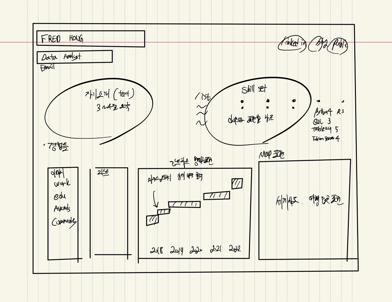 업무경력, 스킬셋, 경험들, 자기소개를 1장으로 담을 수 있는 대시보드를 만드는 것이 목표임.