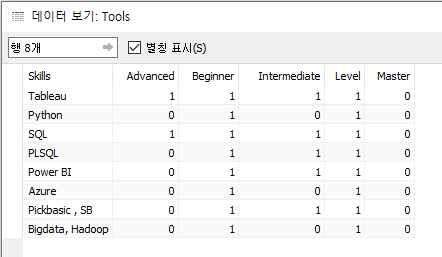 (Tableau의 수준이 Advanced라면 beginner 1, Intermediate 1, Advanced 1, Master 0 인 식)