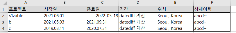 DATEDIFF(’day’, [프로젝트 시작일], [프로젝트 종료일])