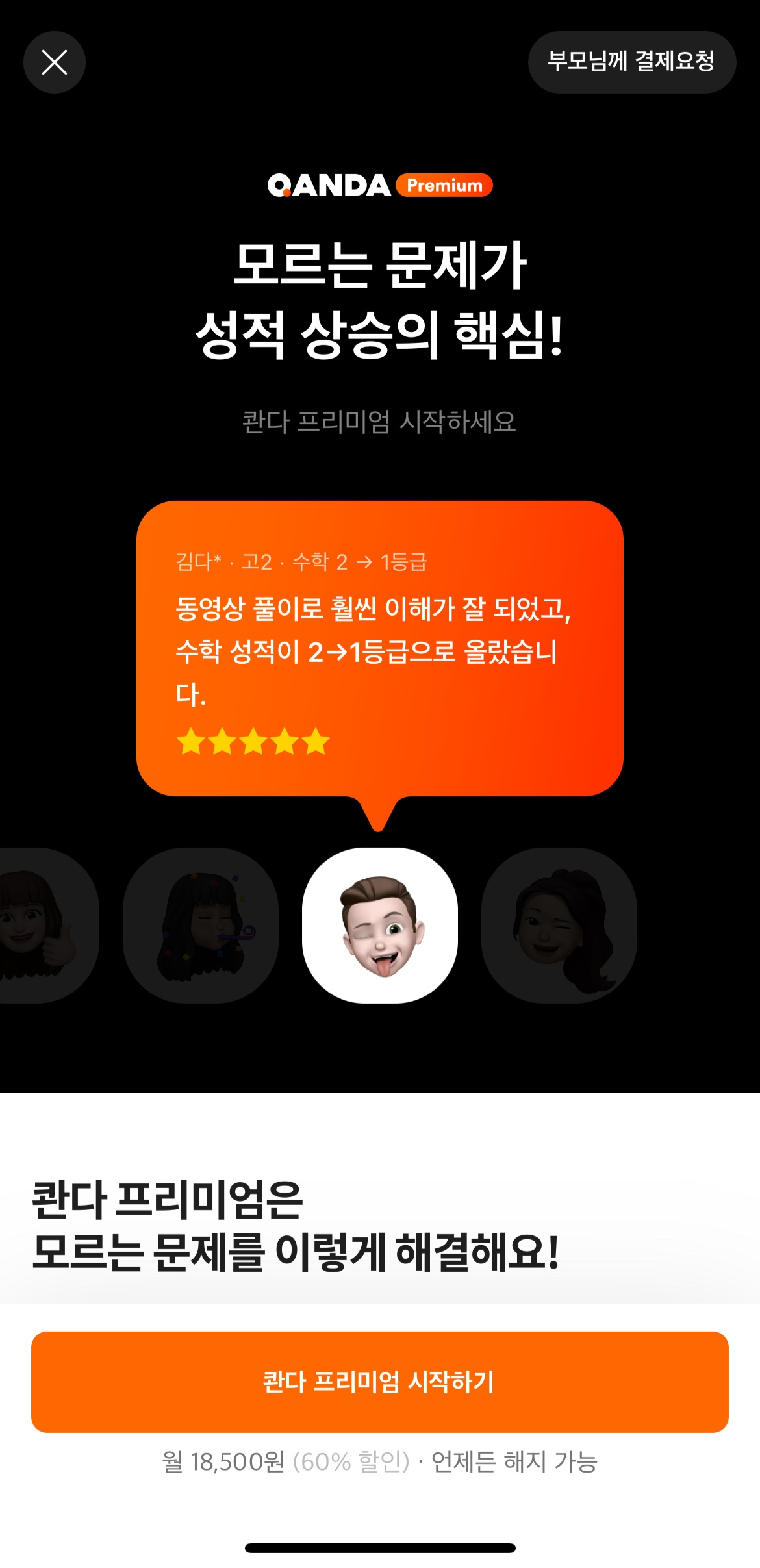 ๋ฌด๋ฃ์ฒดํํ์ด์ง ์ ์๋จ์ ๋ถ๋ชจ๋๊ป ๊ฒฐ์ ์์ฒญ์ด๋ผ๋ ์๋ฐํ ๊ธฐ๋ฅ์ด ์๋ค.