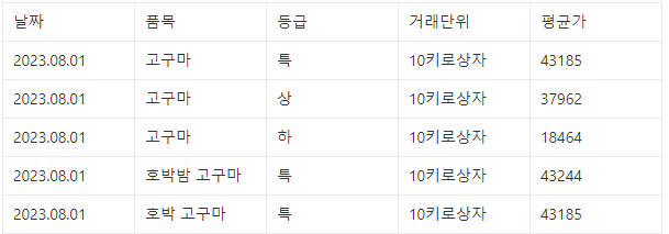 - 원본 : 농넷의 2018년~2023년도 가락시장 경락가격 데이터 (서울시농수산식품공사 제공)
