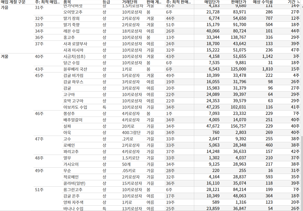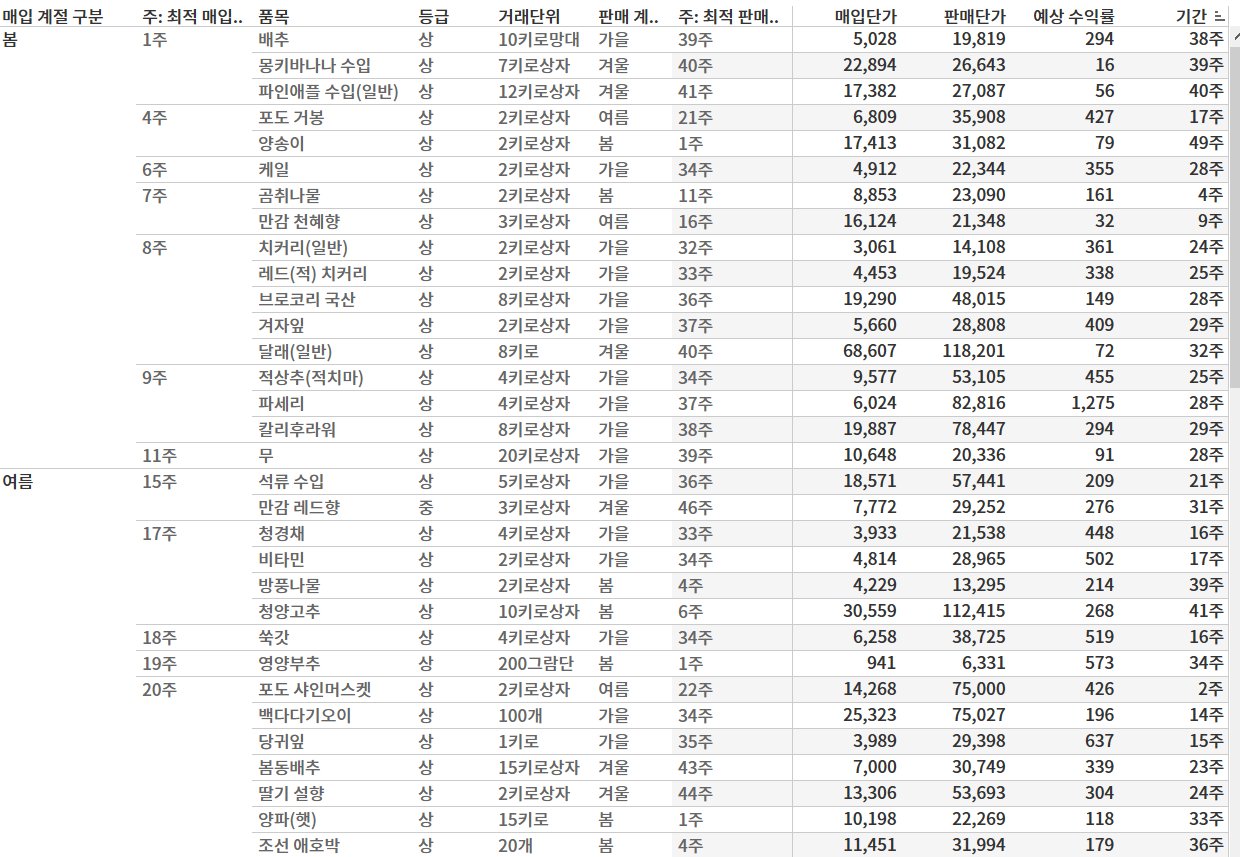 4. 계절별 농산물 매입/판매 시기 추천 리스트