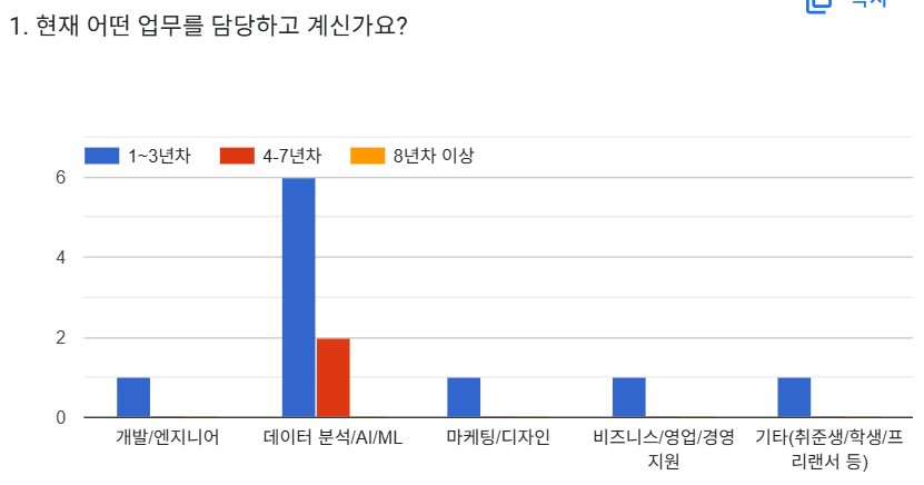 저는 현재 BA로 일을 하고 있는데 소규모 부서라 정보를 얻을 수 있는 곳이 제한적이더라구요. 그래서 다양한 AI 툴을 사용해보고 '다른 분들은 어떻게 쓰고 계실까?' 하는 궁금증이 생겨 이번 설문을 준비하게 되었습니다.