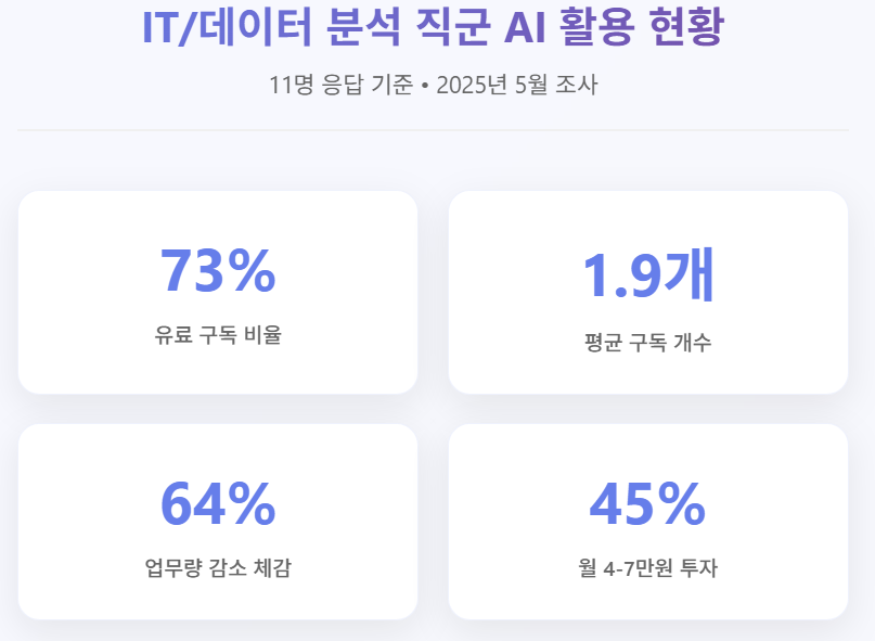 - 도구별 특성 이해가 핵심: 각 AI의 강점과 약점을 파악해서 적절히 조합하는 사람들이 가장 만족도가 높은 것으로 나타났습니다.